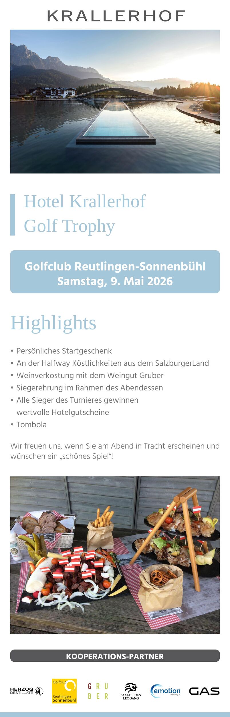 Der absolute Höhepunkt folgt vorgabenwirksam am 9. Mai 2026 - ein Turnier, gesponsert vom österreichischen Luxusresort Krallerhof. Das 5-Sterne-Hotel in Leogang begeistert mit einem exklusiven Wellnessbereich im Wert von 21 Millionen Euro, einem Infinity-Pool inmitten eines Natursees und einer einzigartigen Alpenkulisse.