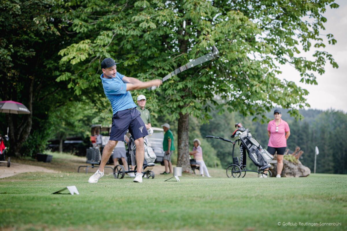 Sonne satt bescherte Petrus den Golferinnen und Golfern in Reutlingen-Sonnenbühl bei ihren Clubmeisterschaften vergangenen Samstag und Sonntag. Nicht aufzuhalten war einmal mehr Kristian Kemmler, Reutlingens bester Golfer, der seinen Trophäenschrank weiter füllte. Nach drei Runden hatte er bei 217 Schlägen acht Schläge Vorsprung auf seinen härtesten Konkurrenten Tim Schäfer und sicherte sich den neunten Meistertitel. Auf Rang drei landete Mark Hummel, der 239 Schläge benötigte. Andrea Zundel rettete über zwei Runden mit einem Schlag Vorsprung vor Vorjahressiegerin Elisabeth Schaal den Clubmeister-Titel ins Ziel.