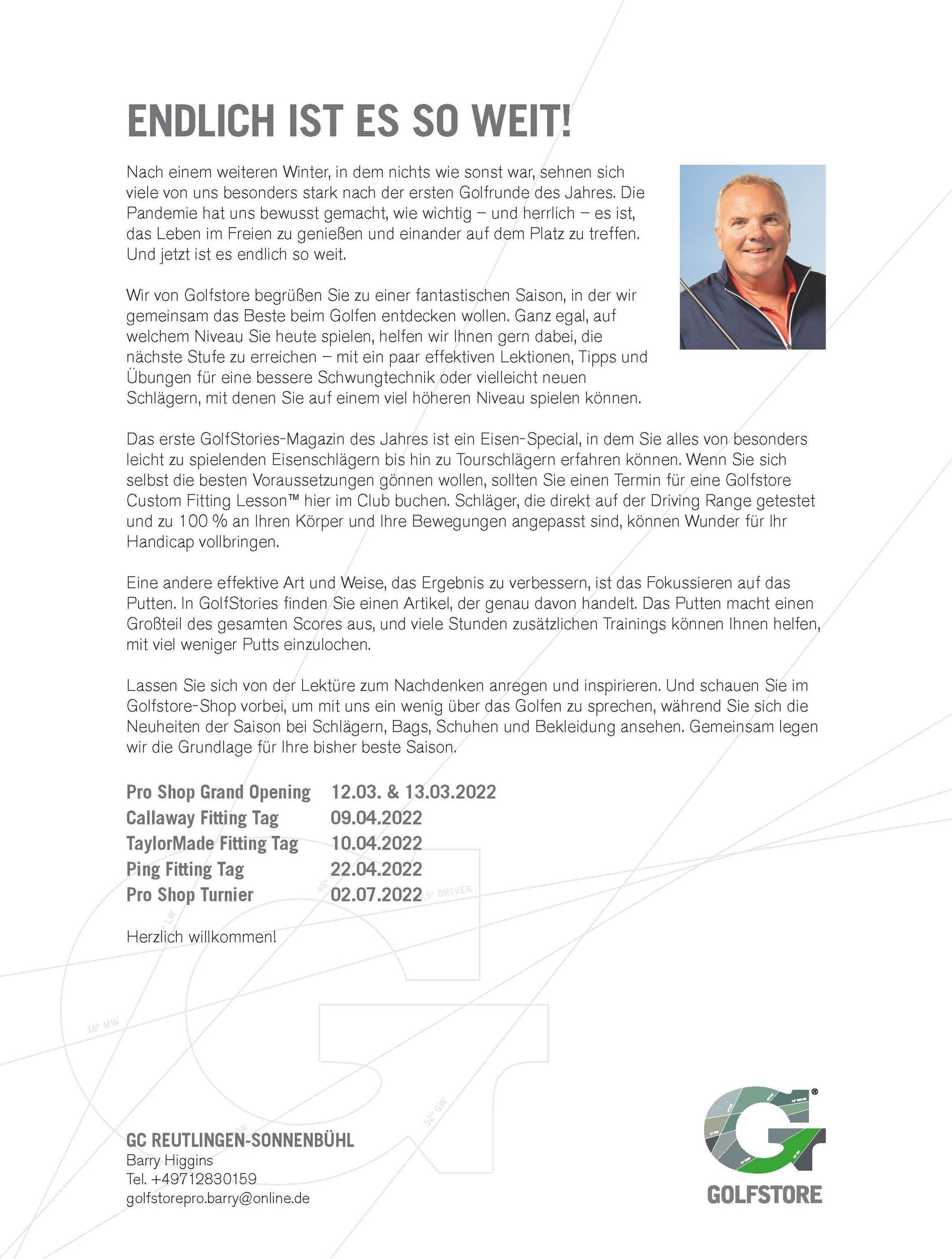 Das Proshop Grand Opening , Fittingtage und weitere Ereignisse der neuen Golfsaison 2022.